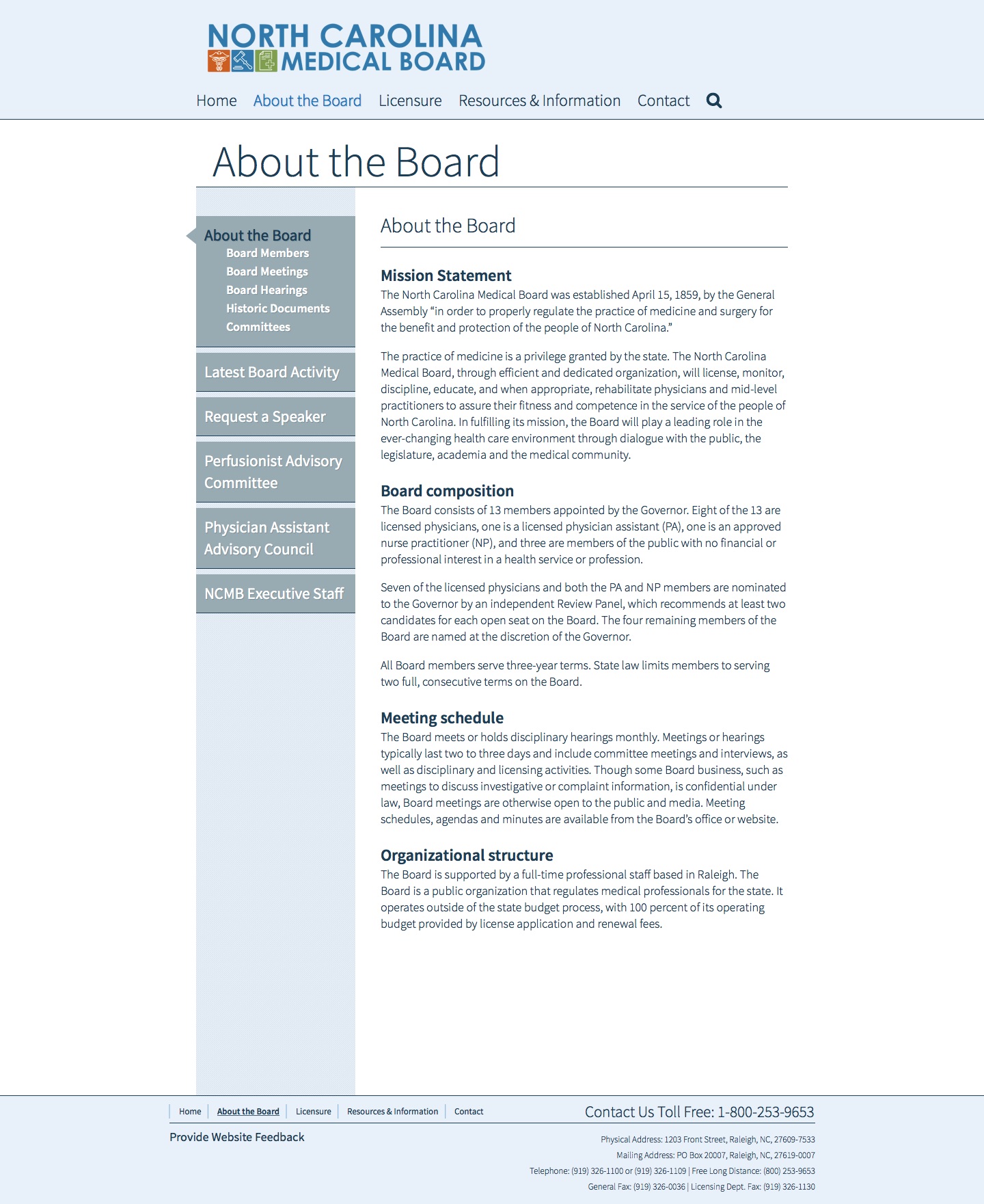 Our biggest challenge with the site redesign was organization. There’s a lot of content in this site and it serves two distinctly different audiences; medical professionals and consumers. We never could have completed this project without the assistance of the board’s public affairs department who not only listened to our suggestions, but participated enthusiastically in the process.